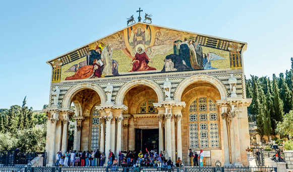 After breakfast, we drive to the Mount of Olives. The summit offers a magnificent view of the Old City. This visit reminds us of Jesus’ last hours in prayer and anguish as he faced his passion and death. Visit the Chapel of the Ascension, the Shrine of Pater Noster, and the Chapel of Dominus Flevit (The Lord Wept). Then, follow Jesus’ Palm Sunday route along Hosanna Road to the Garden of Gethsemane to visit the Grotto, the Garden, and the Church of the Agony. Then, we continue to visit the Church of the Assumption (burial place of the Virgin Mary and St. Anne’s). We then drive through the Kidron Valley and head towards Mt. Zion, where we will pass the Tombs of Absalom and Zachariah. Visit the Church of St. Peter-in-Gallicantu. This church is built on the site of the Palace of Caiaphas, the High Priest. Here, Jesus was imprisoned, and Peter denied the Lord three times. Next, we visit the Upper Room, site of the Last Supper and descent of the Holy Spirit upon the Apostles. Then, visit the Dormition Abbey, built to honor the Assumption of Our Lady. We board our bus again and drive south to the region of Bethlehem passing by Rachel’s Tomb on the outskirts of the city. We drive to the Shepherd’s Fields where you can read the Biblical account of Ruth, David, and the birth of Jesus. At the Shepherd’s Field, where you will visit some of the caves, which are typical of the stables of that time. We drive up to nearby Bethlehem where we visit the traditional birthplace of the Nativity. Here, He was born! Let us kneel down, let us bow our heads and raise our hearts full of admiration and gratitude before this sublime mystery of love! Visit Jerome’s Grotto. We end the day by celebrating Mass: Incarnation Time at the Church of Nativity. You will be given time for shopping in Bethlehem. Return back to Jerusalem for dinner and overnight. (Breakfast, Dinner)