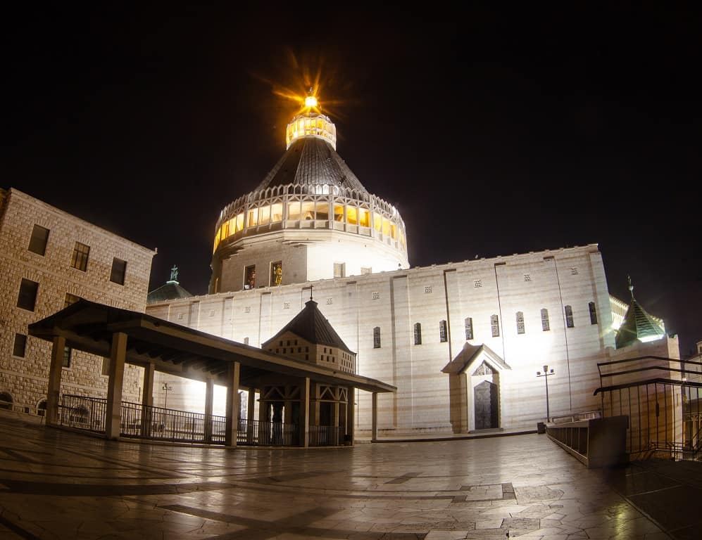 This morning will be your first experience with an unforgettable and delightful Israeli breakfast buffet. After breakfast, we drive along the scenic Mediterranean, stopping at Caesarea by the Sea, site of a flourishing early Christian community, where the ruins of Turkish, Crusader and Roman Civilizations are still visible. St. Paul was imprisoned here before being sent to Rome for trial. It was here, also, that St. Peter baptized the first Gentiles. Your visit includes the Theater, newly-excavated Palace, Hippodrome, and the Harbor. Continue to Mt. Carmel to visit the location of Elijah’s grotto where he asked for the coming of rain after defeating the prophets of Baal. The place is marked by a shrine and a monastery. Celebrate Mass at the Sanctuary of Our Lady of Mt. Carmel (Muhraqa): (“Stella Maris”). Mass: Choose God. Enjoy the breathtaking view from atop Mt. Carmel. This afternoon we drive to Megiddo, on the plain of Armageddon – the prophetic site of the final battle. Then, we continue to the unforgettable Sea of Galilee on the way we stop at Mt. Arbel Cliff, which affords a view over the Lake of Galilee and the main sites of Jesus’ ministry. Then, we continue to the unforgettable Sea of Galilee for hotel check-in and dinner and overnight. (Breakfast, Dinner)