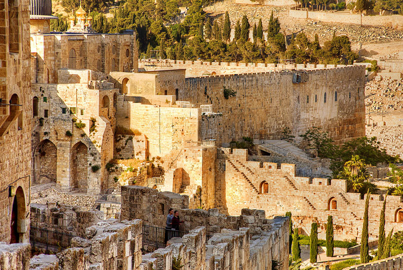 After breakfast, we drive to Nazareth. En-route we stop at Cana for a visit, where Jesus performed the first of His miracles. Couples will have an opportunity to renew their wedding vows. Proceed to Nazareth, the village in which Jesus grew up and lived most of his life. … The Word became flesh … (John 1:14) Visit the Grotto of the Annunciation, St. Joseph’s workshop, and explore the magnificent Basilica of the Annunciation, Mary’s Well, and the Church of the Old Synagogue, which marks the beginning of Jesus’ public ministry. This afternoon, we drive to the foot of Mt. Tabor. At the foot of Mt. Tabor is the little village of Nain. Here, Jesus raised the son of the poor widow from the dead. (Luke 7:11-17). Take a taxi to the top of Mt. Tabor. The elevation provides an utterly commanding view of all of Galilee. It was here that Jesus revealed the wonderful power of presence in communion with saints of the past (Moses and Elijah). This also became immediate evidence of Communion with His Father as well. Visit the site of the Transfiguration. Celebrate Mass at the Church of the Transfiguration. We drive east through the Jezreel Valley to connect with the road south through the Jordan Valley and drive down to Jericho. Visit Jericho, home of Joshua, Elijah’s spring, Jesus’ miracles, and the Mt. of Temptation. Continue to Jerusalem. Finally, atop Mt. Scopus, we will behold majestic Jerusalem, where we will have dinner and stay overnight. (Breakfast, Dinner)